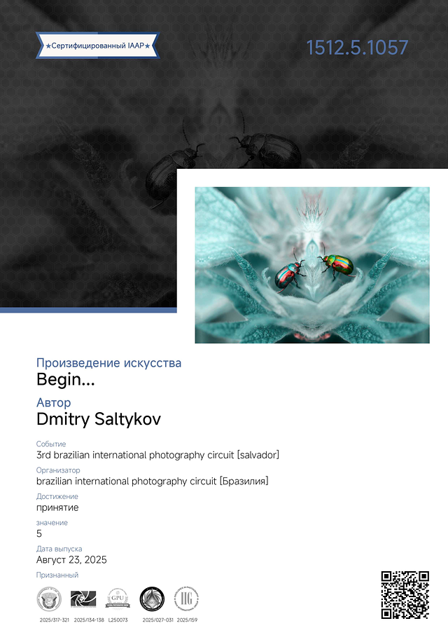 Отметки «Accepted» на конкурсе «3rd Brazilian International Photography Circuit» в разделе «Open Color» (Рибейран-Прету, Сан-Жозе-ду-Риу-Прету и Сальвадор) (Бразилия, «IAAP 2025/134-138», «FIAP 2025/317-321», «GPU L250073», «CONFOTO 2025/027-031», «IIG 2025/159», https://theiaap.com/e/braziliancircuit/)