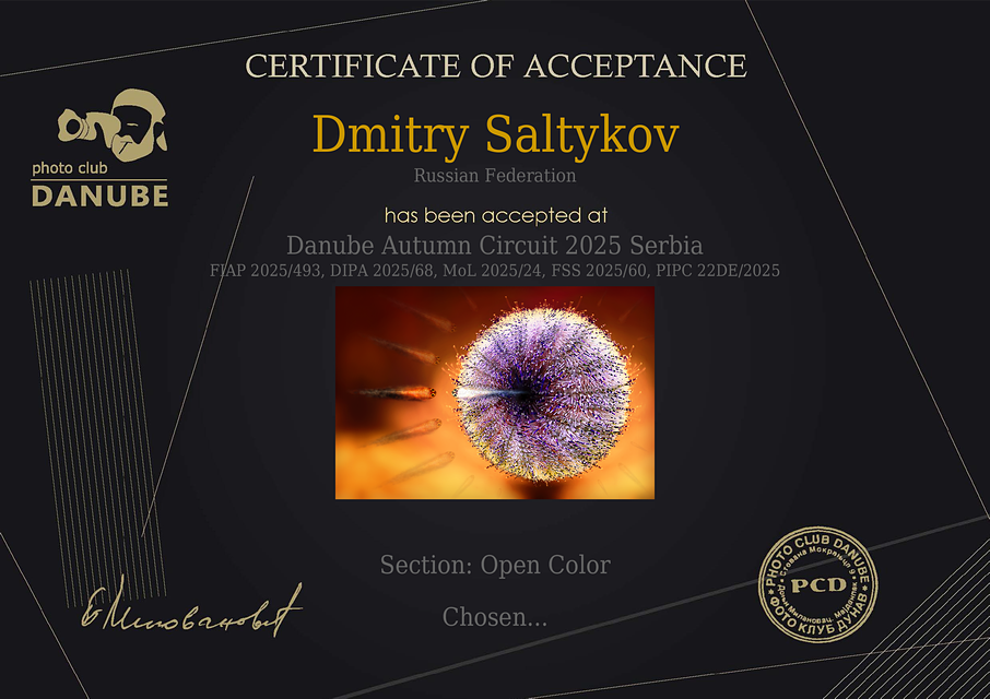 Работа участвовала во II-ом Всероссийском Фестивале «Рисуя Светом» в августе-сентябре 2023 г. («Painting with Light») в номинации «Экспериментальная фотография» (Арт-проект «REVERберация» / «REVERberation», https://reverberation.ru/)