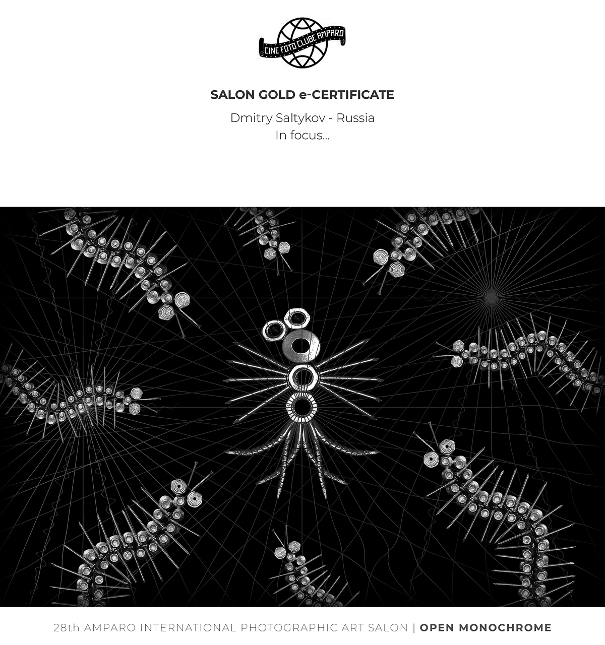 Награда «CFCA Gold E-Certificade» (Золотой диплом и отметка «Accepted») на конкурсе «3rd Brazilian International Photography Circuit» в разделе «Open Monochrome» (Ампару) (Бразилия, «IAAP 2025/134-138», «FIAP 2025/317-321», «GPU L250073», «CONFOTO 2025/027-031», «IIG 2025/159», с публикацией в каталоге участников и победителей «3rd BIPC Art Salon Book 2025», https://theiaap.com/e/braziliancircuit/, https://www.braziliancircuit.com.br/)